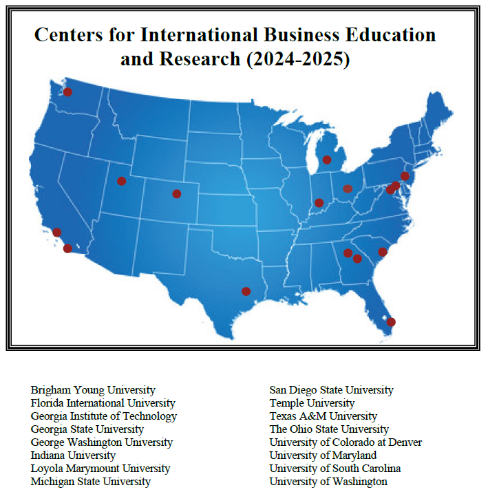 The Centers for International Business Education and Research (CIBERs) were created by Congress under the Omnibus Trade and Competitiveness Act of 1988 to increase and promote the nation’s capacity for international understanding and competitiveness. Administered by the U.S. Department of Education under Title VI, Part B of the Higher Education Act of 1965, the CIBER network links the manpower and technological needs of the United States business community with the international education, language training, and research capacities of universities across the country. The sixteen Centers serve as regional and national resources to businesspeople, students, and teachers at all levels.